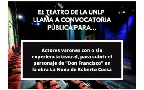 El teatro de la Universidad Nacional de La Plata realiza una convocatoria pública para cubrir el personaje de “Don Francisco” en la obra “La Nona” de Roberto Cossa. La convocatoria está destinada a actores varones con o sin experiencia teatral previa, que representen aproximadamente 75 años de edad o más “en escena”. Se trata de […]