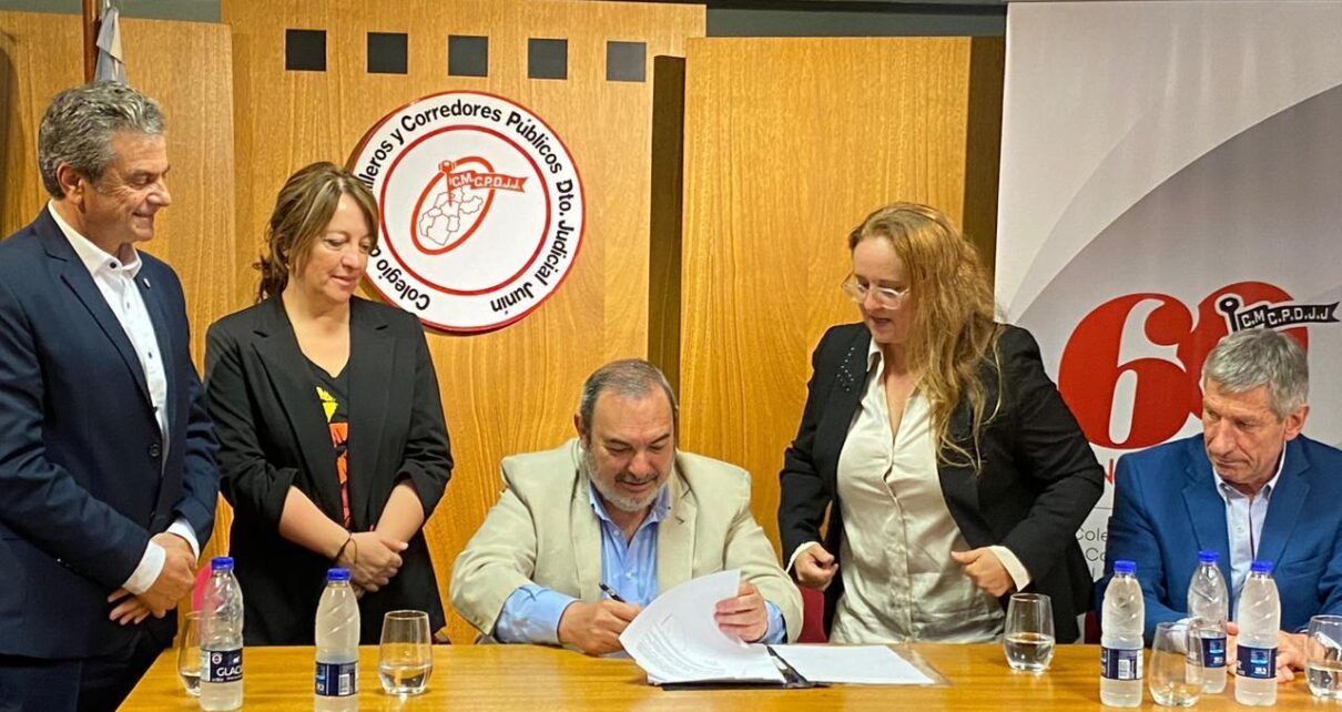 El acto de firma del convenio se realizó el sábado 19 en la sede del Colegio de Martilleros de Junín, y fue refrendado por presidente del Colegio de Martilleros provincial, Luis Eusebio Colao; y por la Codirectora del Instituto de Política y Gobierno de la UNNOBA, Mariana Sáenz, en representación del rector de la Universidad, Guillermo Tamarit. Participaron también del evento, Mariana Pasarello, secretaria General de la UNNOBA; Alfredo Lavalle, vicepresidente del Colegio de Martilleros de la provincia; Guillermo Rossi, presidente del Colegio de Martilleros y Corredores públicos del Departamento Judicial Mar del Plata; Daniel Carlos Di Palma, presidente del Colegio de Martilleros y Corredores Públicos del Departamento Judicial Junín; entre otras autoridades del Consejo Superior provincial de Martilleros, y de la Casa de Altos Estudios.