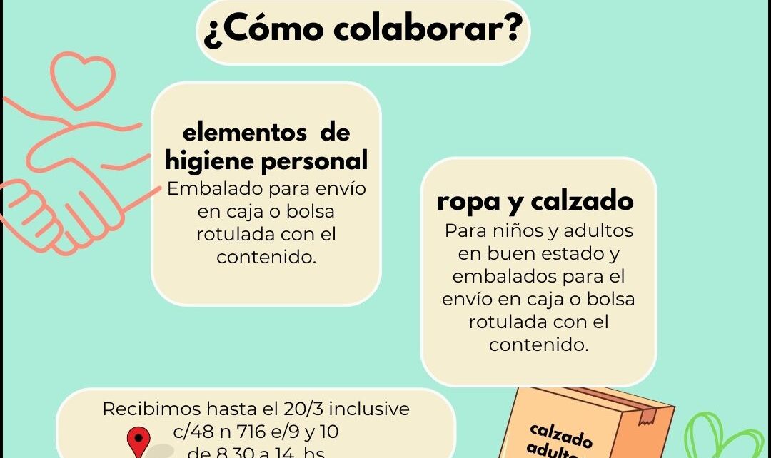 La Delegación La Plata del Colegio de Escribanos de la Provincia, a través de su Comisión de Acción Comunitaria, se encuentra recibiendo hasta el jueves 20 de marzo, elementos de higiene personal, ropa y calzado, para colaborar con la ciudad de Bahía Blanca, en este difícil momento. Ahora agregó un alias para colaborar que es «ColectabahiaDLP».