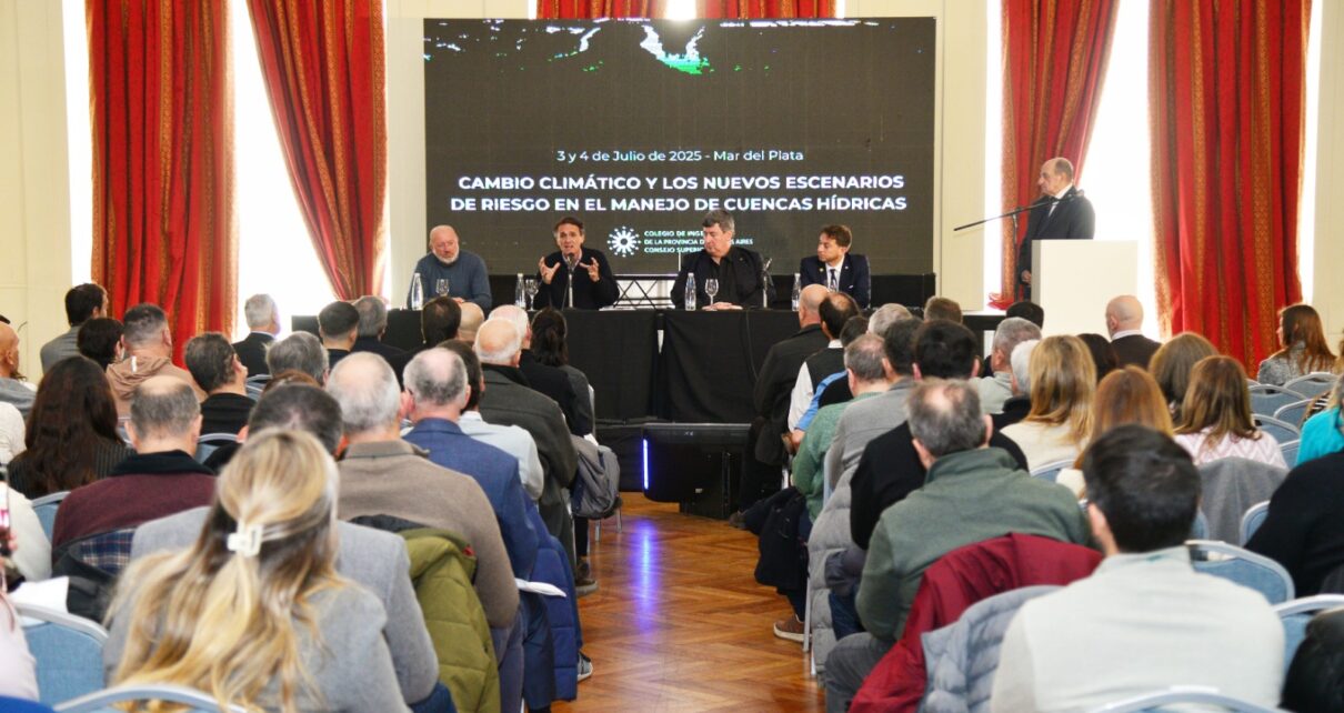 En el Gran Hotel Provincial de Mar del Plata se desarrolla la jornada “Cambio Climático y los Nuevos Escenarios de Riesgo en el Manejo de Cuencas Hídricas”, organizada por el Colegio de Ingenieros de la Provincia de Buenos Aires, un encuentro que reúne a profesionales, funcionarios, académicos y representantes de empresas y organizaciones para analizar los desafíos que plantea el cambio climático en relación a la planificación y la infraestructura hídrica.