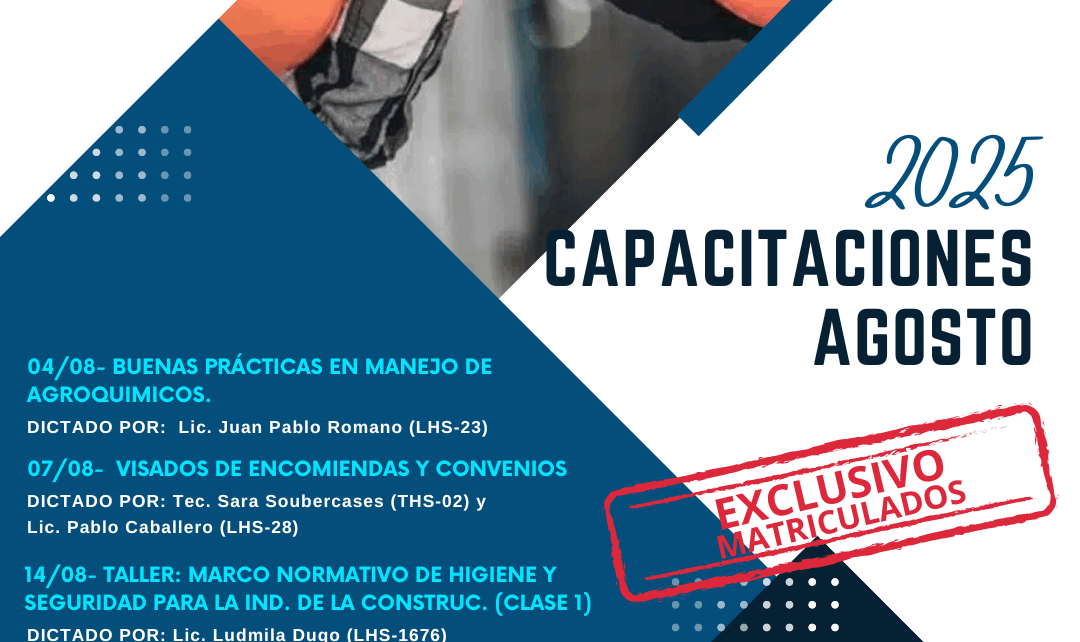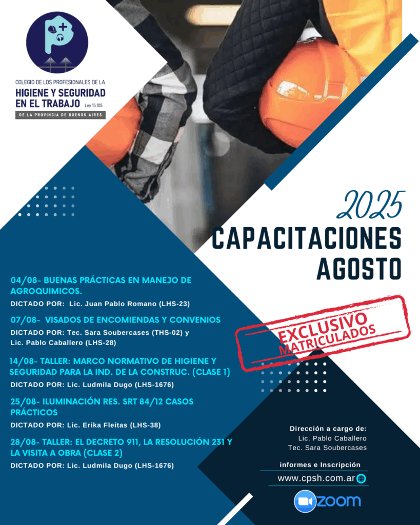 Durante el mes de agosto, al igual que el resto del año, el Colegio de Profesionales de Higiene y Seguridad en el Trabajo de la Provincia de Buenos Aires sigue adelante con el programa de capacitación continua exclusivo para matriculados de la Ley 15.105.