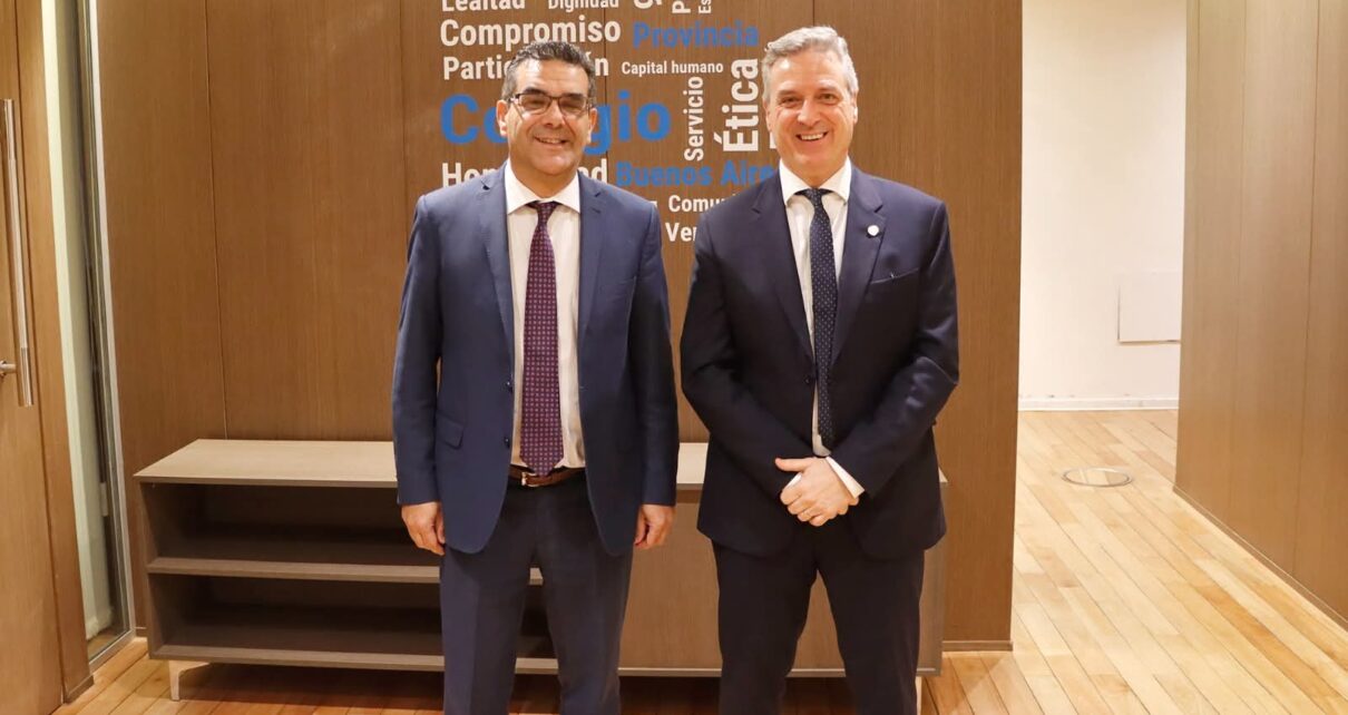 El presidente del Colegio de Escribanos de la Provincia, Guillermo Longhi, quien además tiene a su cargo la conducción de la Caja de Seguridad Social, y el presidente de la Caja de la Abogacía, el Dr. Fabián Gerardo Portillo, compartieron una jornada de trabajo junto a otros directivos, en la que se abordaron temas clave vinculados a la sostenibilidad y eficiencia de los sistemas de seguridad social profesional.